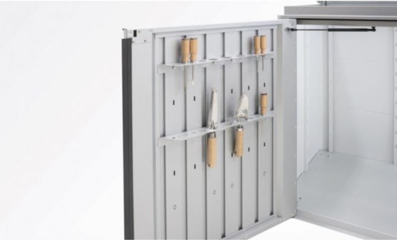 Support de petits outils sur le pan intérieur de la porte.
